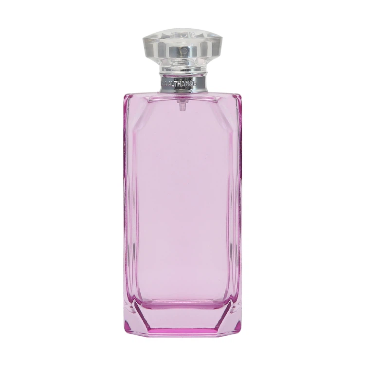 Det första du lägger märke till med denna rosa parfymflaska i glas är dess fängslande rosa nyans. Det genomskinliga glaset utstrålar en mjuk, delikat rosa, utstrålar en aura av femininitet och grace. Färgen är inte bara en visuell njutning utan symboliserar också romantik, elegans och lockelse. Glasets genomskinlighet gör att du kan se vätskan inuti, vilket skapar en fascinerande visuell effekt när ljuset interagerar med parfymen, vilket förstärker den övergripande estetiska överklagandet. En av de utmärkande egenskaperna hos denna parfymflaska är dess noggrant designade kanter. Flaskans hörn är gjorda med diamantliknande snitt, vilket lägger till ett extra lager av sofistikering och briljans. Dessa aspekter fångar och reflekterar ljus i olika riktningar, vilket skapar en gnistrande effekt som påminner om ädelstenar. Detta designelement förstärker inte bara den visuella dragningskraften utan ger också en taktil upplevelse, vilket gör flaskan till ett nöje att hålla.